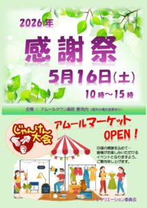 来る5月16日(土)、アムールタウン高崎において感謝祭を開催します。